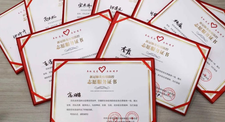 為表彰在疫情防控工作中勇于奉獻、沖鋒在前的各位志愿者員工們,弘揚“奉獻、友愛、互助、進步”的志愿者精神。1月12日,由中共天津市靜海區(qū)委靜海鎮(zhèn)工作委員會頒發(fā)、天津市瑞豐達金屬制品有限公司舉辦的,新冠肺炎疫情防控志愿者表彰大會在瑞豐達三樓會議室順利召開。公司董事長王總、總經(jīng)理張總、公司各部門負(fù)責(zé)人以及公司全體員工參加本次會議。