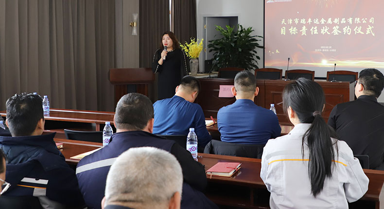 為確保公司發(fā)展戰(zhàn)略有效落實(shí),全面實(shí)現(xiàn)公司2022年度各部門工作目標(biāo),強(qiáng)化企業(yè)執(zhí)行力,提升核心競(jìng)爭(zhēng)力。2月20日,天津市瑞豐達(dá)金屬制品有限公司目標(biāo)責(zé)任狀簽約儀式隆重舉行。總經(jīng)理張加軍、CEO王娟、各部門負(fù)責(zé)人、中高層管理人員等出席此次會(huì)議。